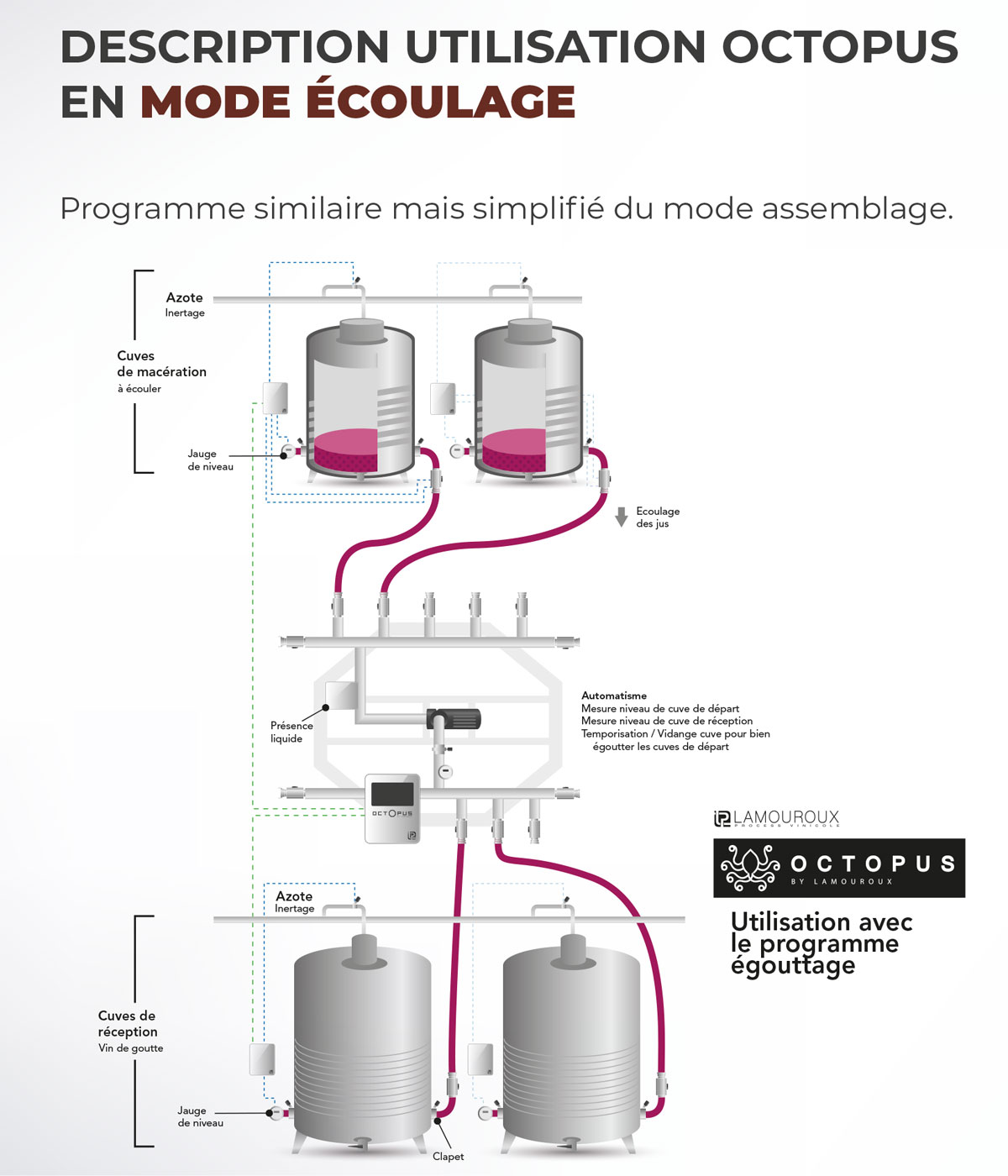 OCTOPUS s’impose comme un outil incontournable pour les professionnels de la vinification, alliant automatisation, modularité et sécurité. Sa conception innovante, son interface intelligente et ses multiples fonctionnalités en font un équipement idéal pour optimiser la gestion des chais. Grâce à cette innovation, Lamouroux s'affirme une fois de plus comme un acteur majeur de l'innovation dans le domaine vinicole.