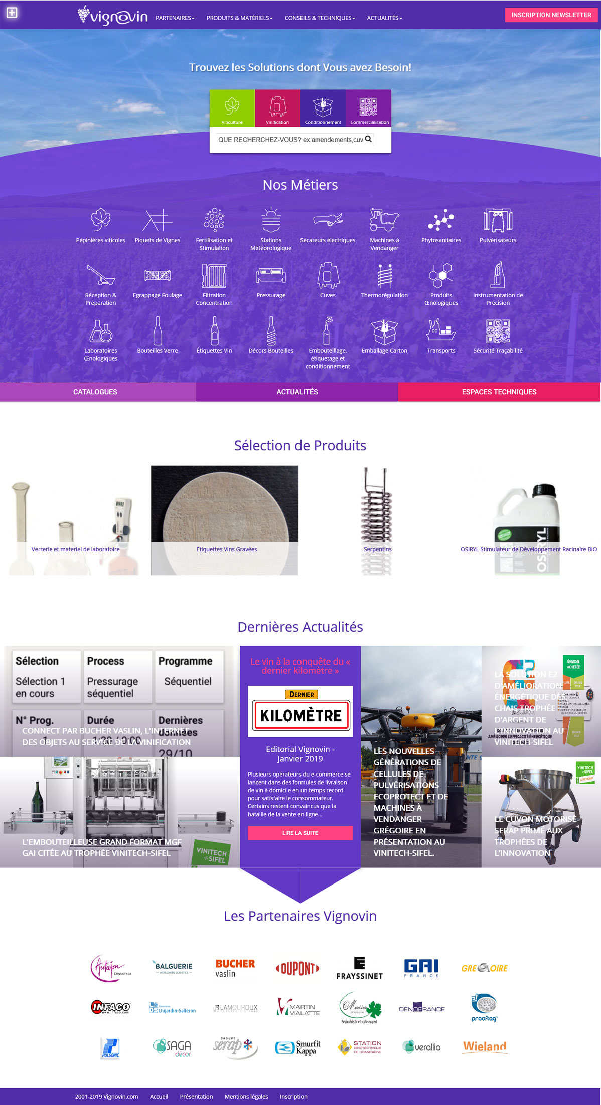 C’est aujourd’hui une communauté de 21 partenaires dans les secteurs de la Viticulture, de la Vinification, du Conditionnement et de la Commercialisation des vins, dont vous pouvez à présent retrouver tous les conseils, les actualités, les catalogues produits et les formulaires de contacts régionalisés, grâce à des options de filtrages : vos recherches et navigations se voient ainsi très optimisés. Avec une arborescence complètement revue, nous lançons également parmi les nouveautés une section « Questions et Réponses » afin de vous apporter des informations au plus vite.