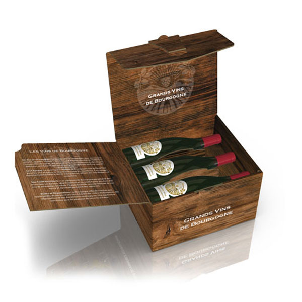 Coffret carton de 6 bouteilles style caisse bois vins couchées